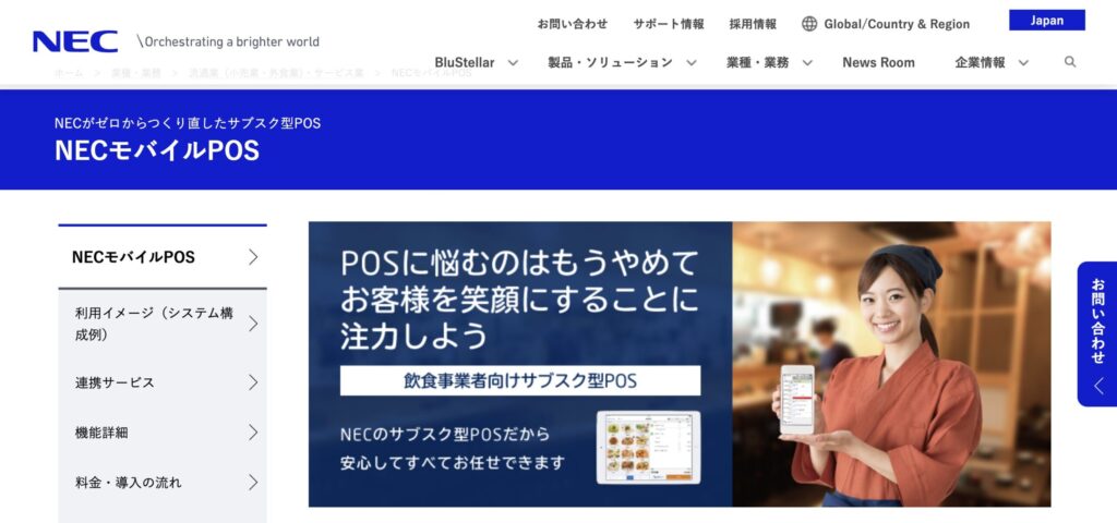 | NECモバイルPOS | 要問合せ | 要問合せ | 電話(24時間365日)、リモート、保守 | ・多店舗展開向けの管理機能が充実 ・大手ならではの堅牢な24時間365日保守体制 | ・個人店や単店舗には機能過多になりがち ・利用しなくても料金がかかるサブスク型 |