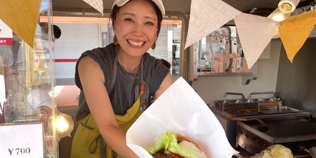 福島県でハンバーガーを販売する「発酵キッチンミモザ」様の事例です。以前は大きなボタン式レジで、日差しで見づらい上にキャッシュレス非対応。お会計のたびに調理用の手袋を外して現金を触る手間が、現場では大きな負担でした。