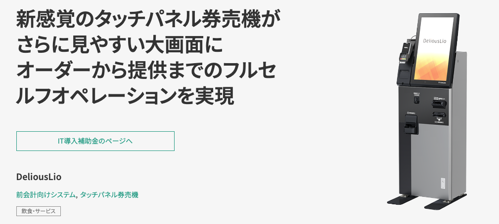 メニュー登録や売上管理、キャッシュレス決済連携など、飲食店に必要な機能を備えています。初めて券売機を導入する店舗でも相談しやすく、省人化や会計ミス削減を重視する店舗におすすめです。