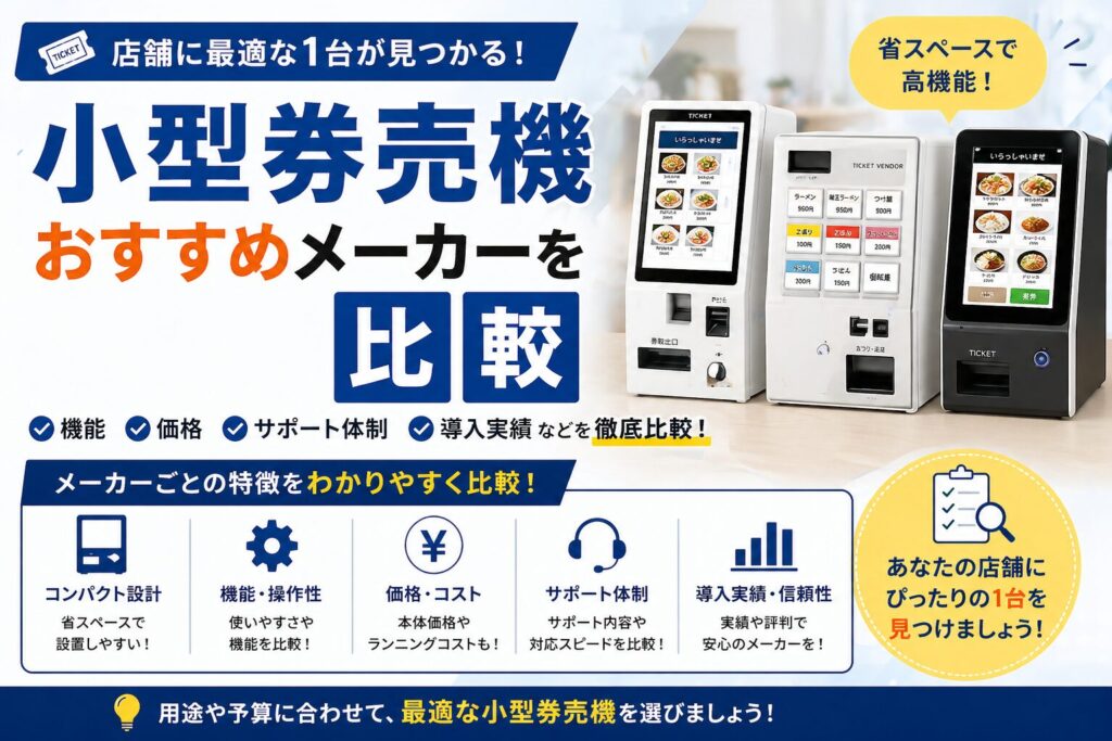 ここでは、小型券売機おすすめメーカーを7選ご紹介します。
